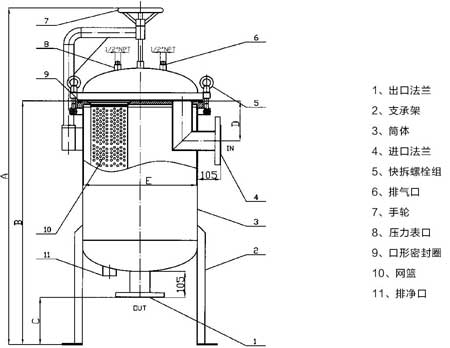 3.快開多袋式過濾器,20秒即可啟閉 ,適用于大流量并需要經常更換濾袋的場合;